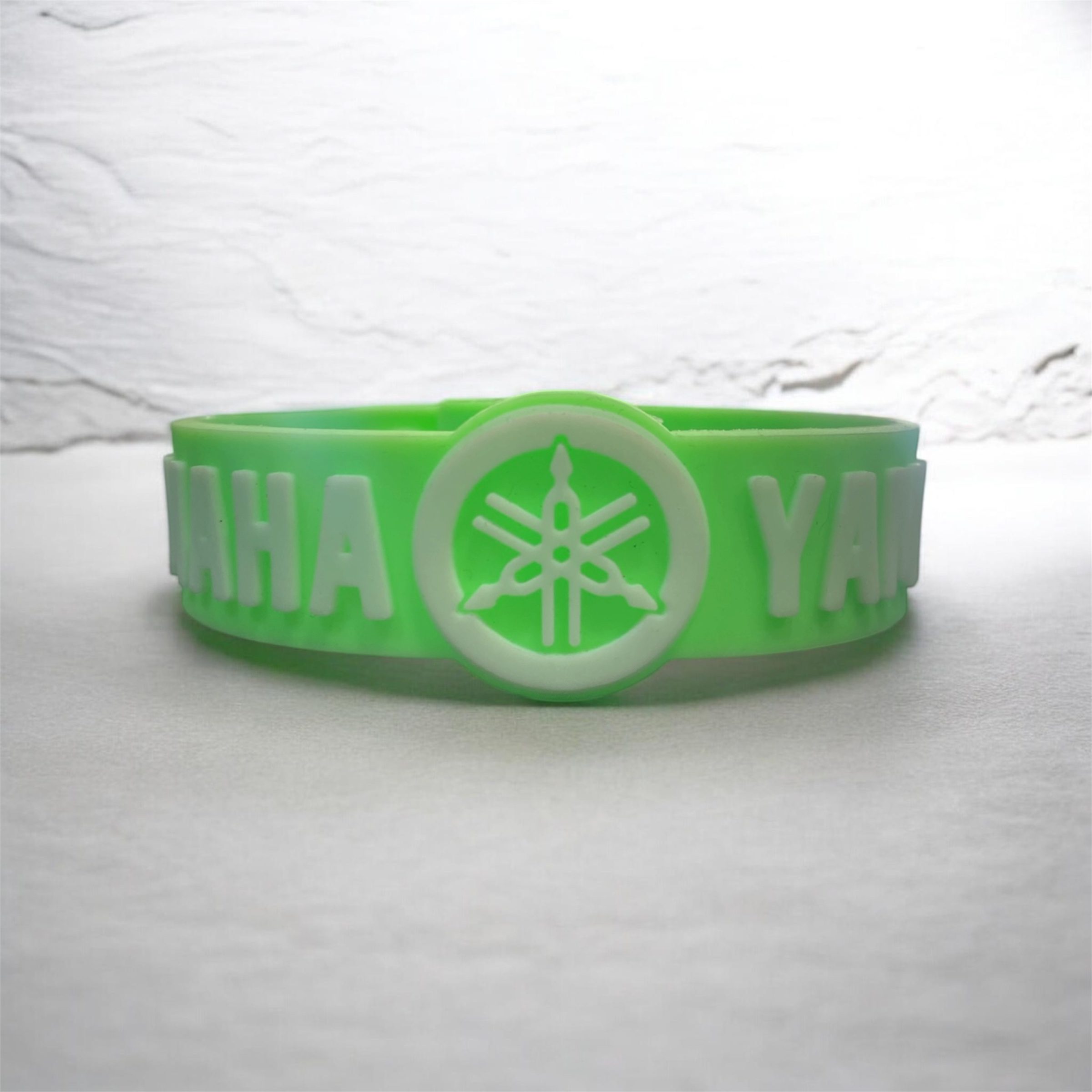 Bracelet Yamaha (Vert) — bracelet élégant en silicone du logo Yamaha, conçu pour un look sportif et raffiné. Confortable, résistant à l’eau et aux déchirures, avec fermoir sécurisé pour un maintien fiable au quotidien.