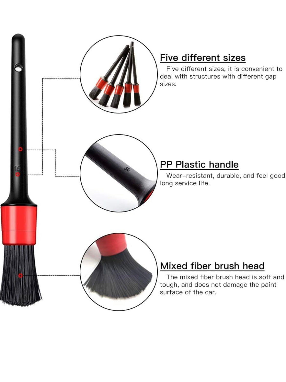🧽 باك 5 فرش تنظيف بروفيشنال Detailing – للسيارات، الموتو، الدار، الإلكترونيك والـPC